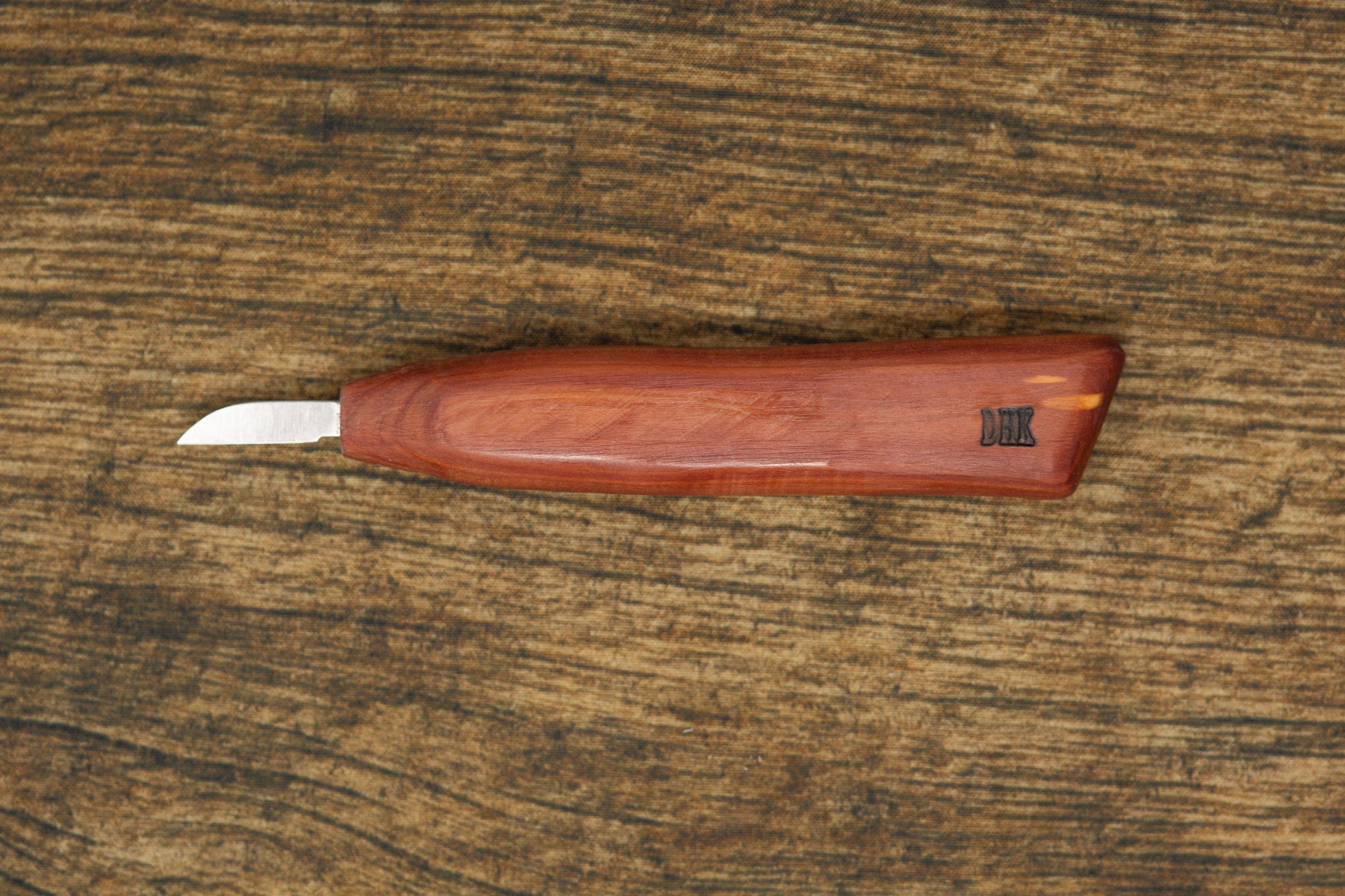 DHK Deep Holler Knives are hand made with premium high carbon tool steel RC 59-61, which is recognized as one of the finest blade materials in the industry. They are hand made on the plains of NW Iowa with aged lumber sourced from Iowa and the Hollers of Eastern Tennessee. This handle is designed to fit your carving style in a variety of woods including Maple, Oak, Cedar, and Walnut.