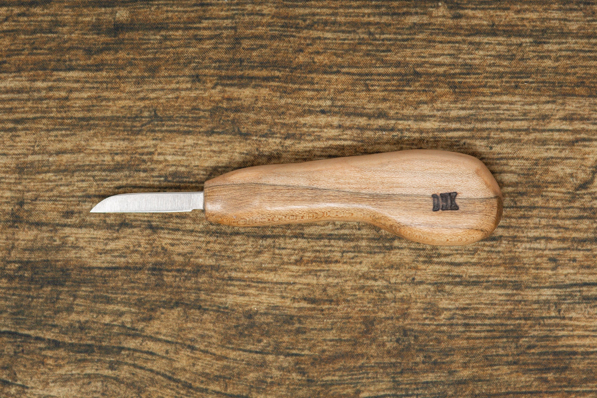 Expertly crafted carving knife featuring a distinctive cigar-shaped handle for superior grip and control. Perfect for detailed woodworking, whittling, and precision carving tasks. The ergonomic design reduces hand fatigue during extended use.